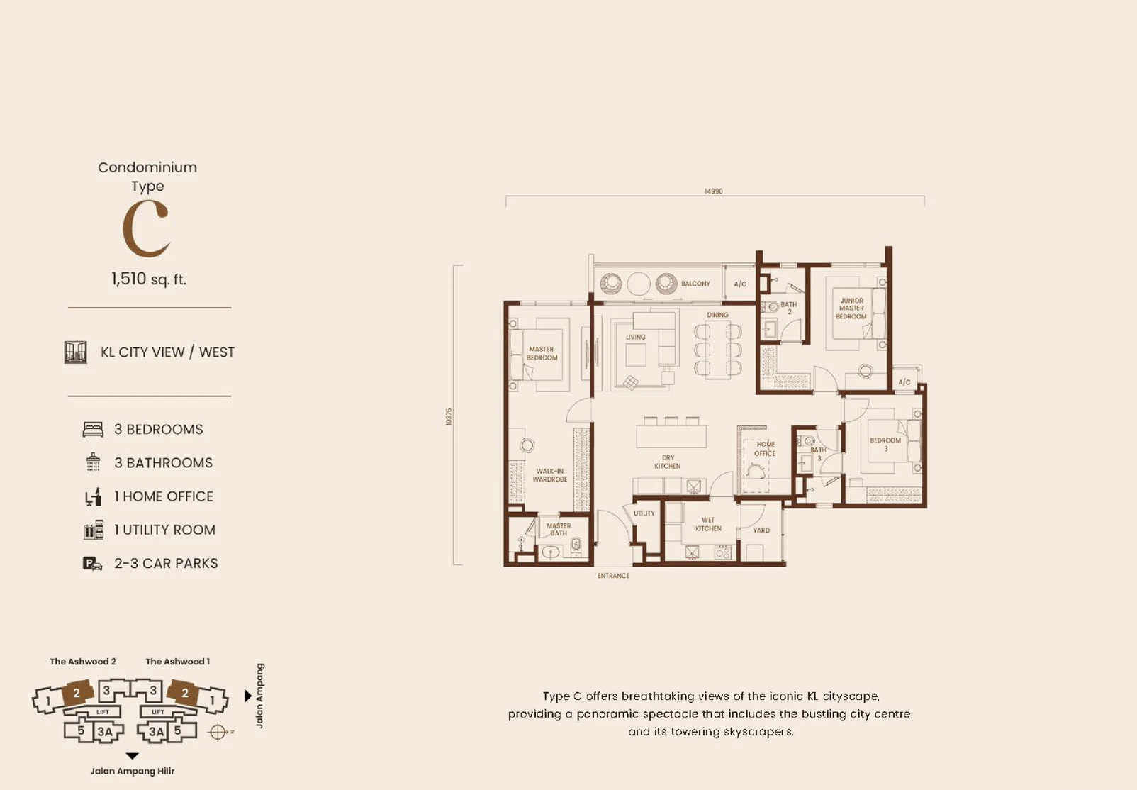 The Ashwood boasts 302 units of condominium, 40 units of 2-storey duplex, alongside the exclusive low-rise development with only 12 units of 3 and 4-storey villa, making the property a truly rare find in Kuala Lumpur.